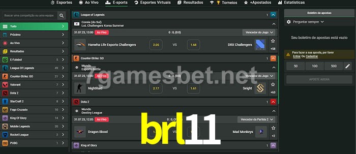 O brl11 oferece uma grande seleção de opções de apostas em e-sports com probabilidades competitivas